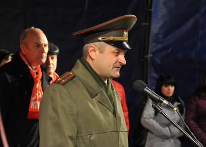 Затем слово было предоставлено подполковнику, начальнику штаба Московской городской организации «Союз советских офицеров» И.А. Хорошилову. Советский офицер напомнил, что Великий Октябрь послужил толчком к созданию действительно народной Армии-Победительницы. Красное Знамя Октябрьской революции было водружено над поверженным Рейхстагом. «И мы должны приложить все усилия для того, чтобы красное знамя вновь развевалось над Красной площадью в Москве», - призвал И.А. Хорошилов. Выступающий также поднял тему непрекращающихся (особенно в последнее время) провокаций против Мавзолея В.И. Ленина. «Руки прочь от Ленина!», - вместе с Хорошиловым громко скандировали митингующие.