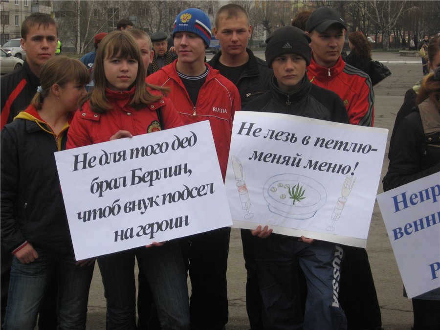 Я вижу здесь много молодых людей. Вы сделали правильный выбор, что пришли на этот митинг. Лучше занимайтесь спортом и держитесь подальше от тех компаний, где употребляют наркотики. Умейте сказать «Нет!».