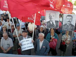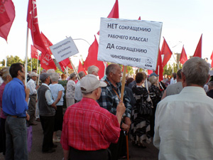 Требуем покончить с безработицей! Сокращать не трудовой народ, а чиновников! Трудовому народу – работу, достойную зарплату! Пенсионерам - достойные пенсии! Уравнять в правах с ветеранами войны тружеников тыла и детей войны!