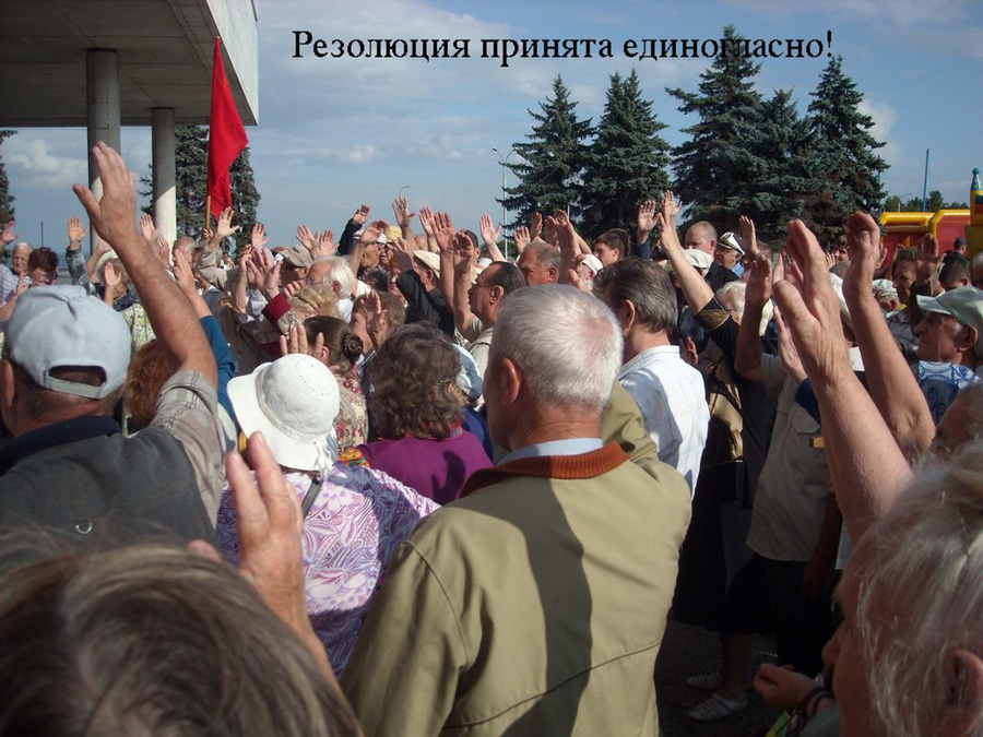 Мы, жители родины Владимира Ильича Ленина, являясь частью великого российского народа, 20 лет терпеливо сносили все эксперименты так называемой «элиты», узурпировавшей власть в стране, присвоившей общенародную собственность, обездолившей граждан.