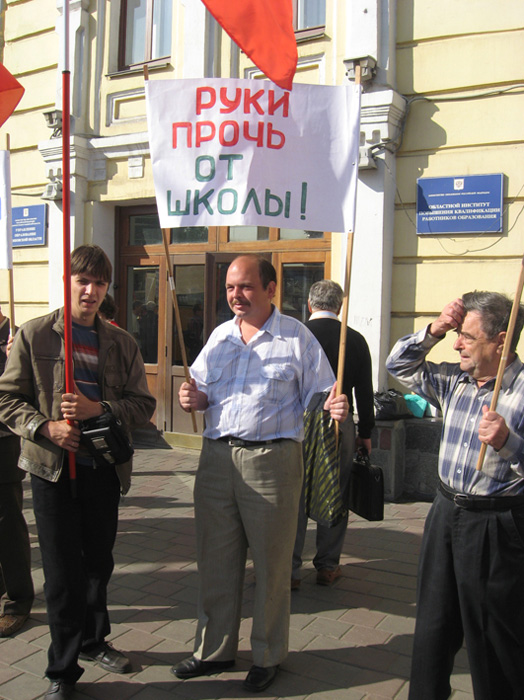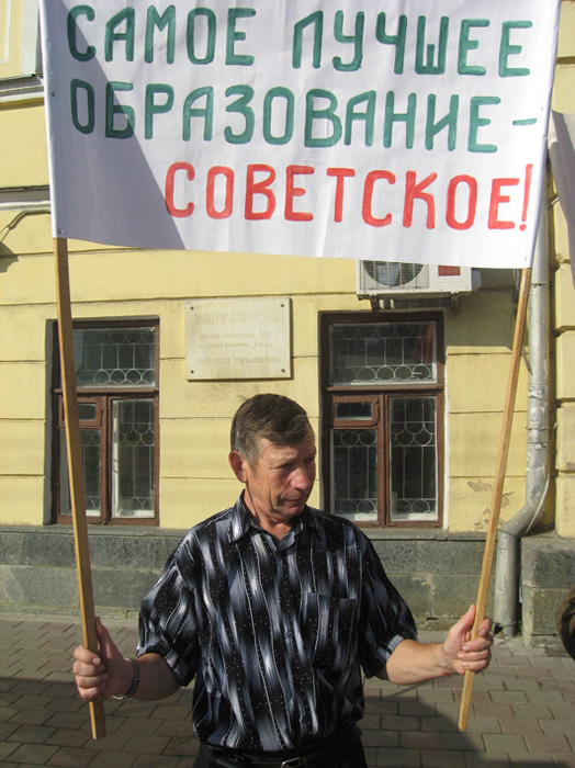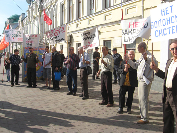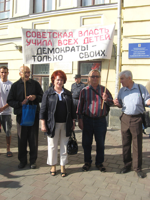 В знак протеста против бездарного разбазаривания советского наследия, в том числе школ и лучшей системы образования, тамбочане вышли на акцию протеста. В их руках транспаранты с лозунгами: «Грамотный народ – сильная страна!», «Самое лучшее образование – советское!», «Нет болонской системе!» и др.