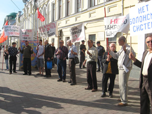 Секретарь ОК КПРФ А.И. Жидков говорил о развале советской системы образования, о минусах и откровенных провалах системы ЕГЭ. В доказательство приводились цифры и аргументы. «Мы видим, как подделываются результаты экзаменов. Закончившийся учебный год принес нам целую массу лжеотличников – это почти четверть от общего числа. Они, сдавшие на пятерки русский язык, в заявлениях о приеме в университет допускали грубые орфографические ошибки. И это – наши будущие учителя, врачи, журналисты, управленцы и прочие. Нужно срочно и в корне менять положение дел!» - эти слова участники пикета поддержали аплодисментами.