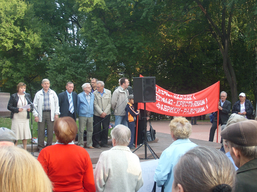 В завершении митинга было объявлено решение бюро Пензенского обкома КПРФ о проведении с 20 сентября по 20 декабря 2009 года сталинского призыва в ряды коммунистической партии, только вместе, борясь за справедливость и лучшую долю для нашего народа мы добьемся многого.