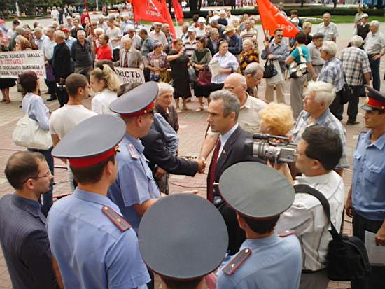 Тем не менее, следуя рекомендациям администрации, депутаты - коммунисты Законодательного Собрания Ростовской области Бессонов В.И. и Бессонов Е.И. провели встречу с избирателями у входа в здание Администрации Ростовской области.
