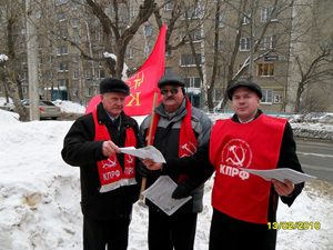 13 февраля коммунисты города Ижесвка, совместно с коммунистами городов Глазова и Сарапула провели пикет в Устиновском районе города Ижевска.