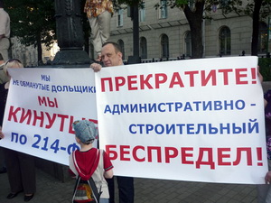 Около двухсот человек, собравшиеся на митинге, представляли инициативную группу дольщиков Южного Тушино (компания «Энергостройкомплект-М»), пострадавших от деятельности Инвестиционной компании «ВНЛ», инициативные группы из Подмосковья - городов Железнодорожный и Троицк и многих других.