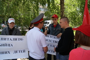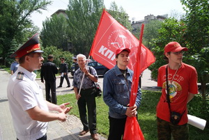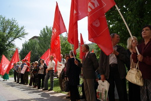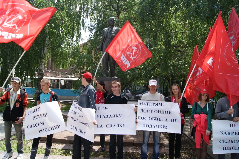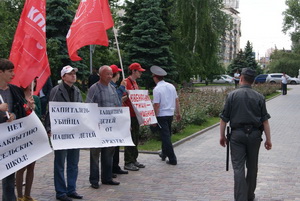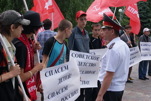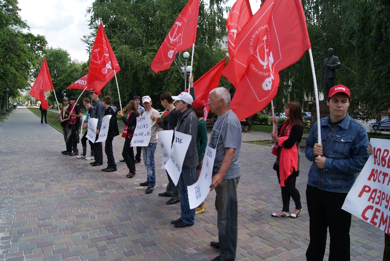 Пикет, организованный напротив мэрии города, собрал более 50 коммунистов и сторонников. В 10.00 протестующие люди с плакатами: «Материнство и детство под защиту государства», «Ювенальная юстиция – разрушение семьи», «Бесплатное образование и медицина для всех» - начали акцию протеста, не смотря на постоянное давление и претензии со стороны правоохранительных органов. Сначала милицию возмущала патриотическая музыка, которую включали пикетчики, затем придрались к тому, что якобы не соблюдается расстояние от городской администрации до места пикетирования. А еще лучше бы, если участники пикета разошлись бы по домам. Ведь у нас в городе, как в известной песне «Все хорошо, прекрасная маркиза».