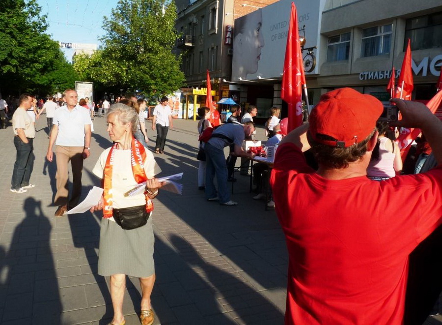 Горожанам вручалась газета Саратовского обкома КПРФ "Коммунист - век ХХ-ХХI", газеты Волжского и Заводского райкомов КПРФ "Волжский набат" с текстом Антикризисной программы КПРФ и "За лучшую жизнь!" посвященная Международному Дню защиты детей.