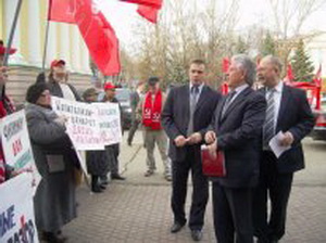 Не обошлось в эти дни без стычек с депутами единоросами. Так депутат от ЕР А. Исаев, который, по странному стечению обстоятельств, после недолгого пребывания в должности директора саратовскогого водоканала приехал на заседание Думы на шикарном "Лексусе", ощущая себя "хозяином жизни" решил загородить своим автомобилем наглядную агитацию коммунистов. Первый секретарь Заводского райкома КПРФ г. Саратова Д.В. Сорокин, коммунисты В.В. Маслов, О.М. Дрыгин, Р.А. Коростелёва быстро "привели в чувство" зарвавшегося ЕРовца и вынудили его ретироваться. Первый секретарь Саратовского обкома СКМ Мария Тимофеева вручила листовку с разъясняющую точку зрения пикетчиков лично в руки губернатору Саратовской области П.Л. Ипатову, теперь у него не будет возможности говорить о том, что он не знает о мнении коммунистов и комсомольцев.