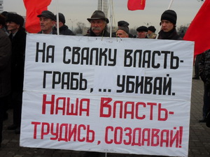 Мы требуем создания правительства народного доверия, принятия неотложных антикризисных мер в интересах развития реального сектора экономики и большинства населения страны, и в первую очередь, возврата в собственность общества природных богатств и стратегических отраслей экономики.