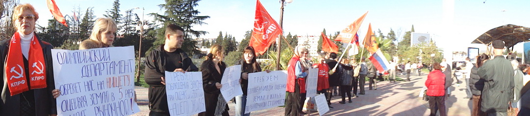 На пикет вышли и некоторые руководители ТОСов. Например, председателя ТОС «Макаренко» Геннадия Бедракова беспокоят некоторые многодетные семьи попадающие под расселение из за строительства дорожной развязки. Люди обращаются, -говорит Бедраков, -а я даже не знаю чем им конкретно помочь. Роль местного самоуправления сведена на нет, к нам власти не прислушиваются. Многодетная семья Ревенко с улицы Макаренко, 10 от государства ничего и никогда не получала. На свои средства построили дом, который по этому адресу находится почти полвека. А сегодня земля где он стоит понадобилась Олимпийскому департаменту. Департамент выселяет семью Ревенко из 15 человек с малолетними детьми по сути дела на улицу, не предоставляя должной и равноценной компенсации. Семья Ревенко опасается, что новый 2011 год им придется встречать на улице с маленькими детьми. Такой Олимпиаде, мы не рады, -говорят Ревенко. Их требование: «Олимпийский департамент! Руки прочь от нашего единственного жилища, наших детей и нашего будущего!».
