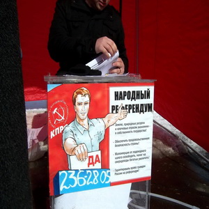 У подножия памятника В.И.Ленину была развернута красная палатка, урна для голосования и плакаты с информацией о Народном референдуме. Яркие призывы коммунистов нашли отклик у казанцев, которые останавливались, отвечали на вопросы бюллетеня, получали спецвыпуски газеты «Правда».