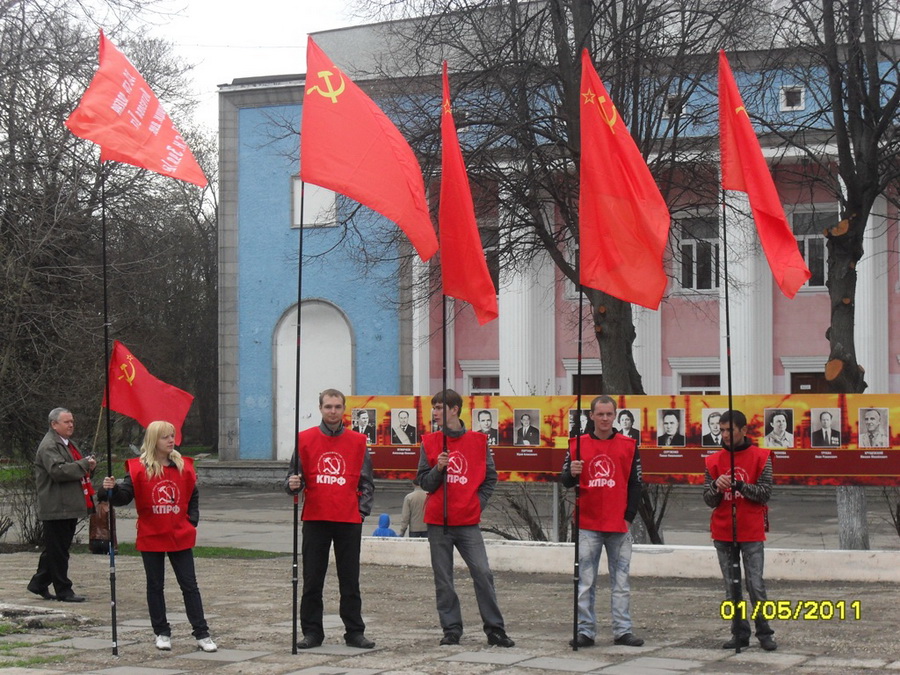 Уведомление, поданное в установленном порядке в администрацию города, предполагало сбор у памятника В.И. Ленину перед городским Домом культуры, затем шествие до Советской площади, где планировался митинг. Однако, как и в прошлые годы, местные власти в альянсе с единороссами и «официальными» профсоюзами заняли площадь под своё действо, именуемое «праздником труда». Коммунистам было предложено присоединиться, но, понимая, что слова им не дадут и такое проявление «солидарности» с их стороны будет, мягко говоря, неуместным, они отказались и провели своё отдельное мероприятие на площади перед ДК. Приглашения новомосковцам встретить Первомай с коммунистами было подготовлено и роздано активистам для распространения за 2 недели до праздника.
