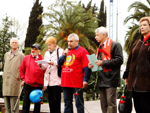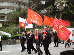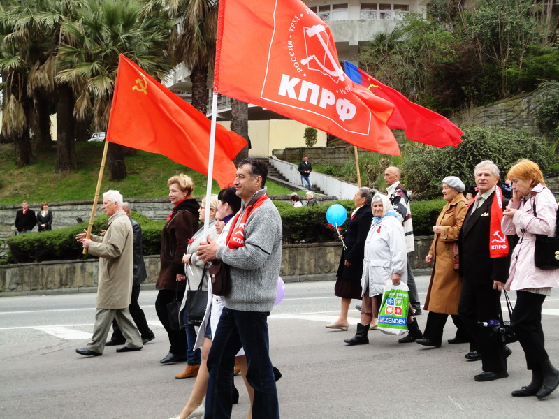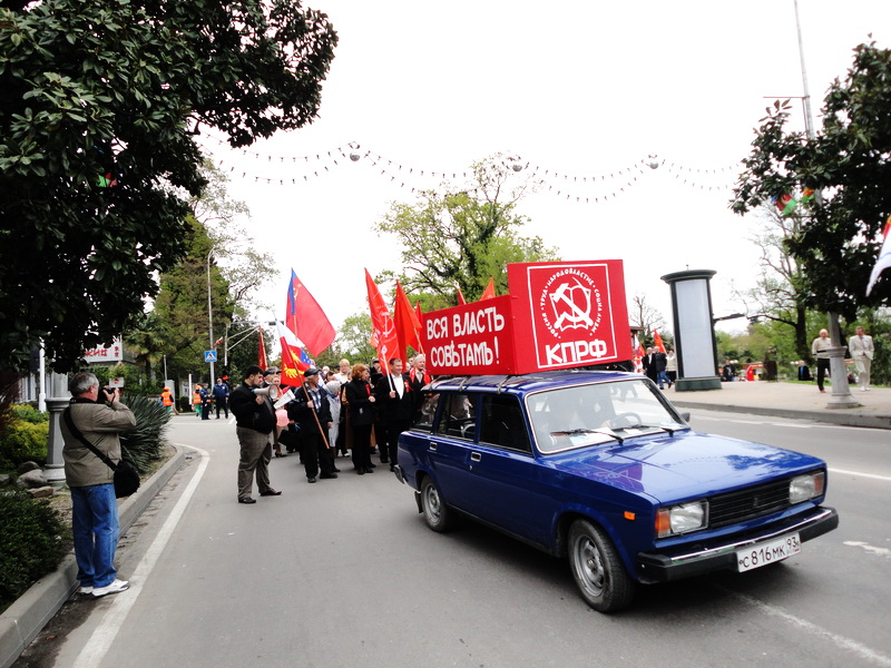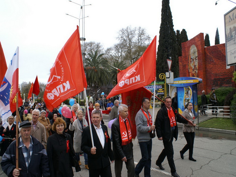 Колоны демонстрантов с красными флагами и песнями советской эпохи прошли от памятника Ленину по Курортному проспекту до парка «Ривьера». При этом работники ГАИ отметили, что их никто из администрации не предупредил, что колоны демонстрантов будут двигаться по проспекту до 12 часов 40 минут. Поэтому инспекторам пришлось регулировать движение транспорта спонтанно. При этом Юрий Дзагания отметил, что им было послано уведомление в администрацию города о шествии колоны КПРФ по Курортному проспекту с 12 часов до 12 часов 40 минут, однако, местная администрация продемонстрировала свое не уважение к правам сочинцев, пришедших на митинг КПРФ.