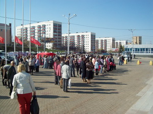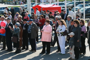 А 9 мая традиционные для коммунистов шествие с копией флага Победы в парке Победы, главном месте празднования, завершилось экскурсией ветеранов войны в красочном автобусе, оформленном портретами Иосифа Сталина и красными флагами, в салоне которого были фотографии фронтовиков. Автобус ехал по центральным улицам города, останавливаясь у всех памятников и бюстов, посвященных героям войны. Ветеранов войны молодежь угощала прохладительными напитками и бутербродами. Желающие фотографировались на память, у исторического автобуса. Фронтовики были очень растроганы и благодарны.
