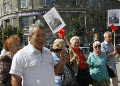 «Меняем Путина и Медведева на одного Лукашенко!», «Мы против травли братского народа Белоруссии», «С кем воюет Путин?», «Батька! Не сдавайся!», «КПРФ – социализм – Советская власть – Союз братских народов!» - эти и другие броские, боевитые лозунги, флаги СССР, КПРФ, Ленинского комсомола и Республики Беларусь, красные накидки привлекли внимание десятков воронежцев.