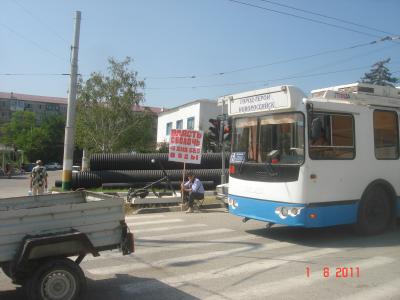 Расположившись возле оживленного участка проезжей части с плакатом «Власть – сволочь! Четыре дня без воды», ветеран-афганец заявил, что он будет продолжать пикетирование, пока жителям его микрорайона не восстановят подачу воды, которую прекратили четыре дня назад.