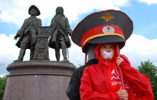 Троих комсомольцев "скрыла" под собой большая, примерно метр в диаметре, фуражка, символизирующая всеохватность полицейского контроля и репрессивной машины ГУВД – прокуратуры - ФСБ. Необходимо отметить, что даже данное мероприятие не обошлось без навязчивого вмешательства властей. Изначально планировавшийся митинг возле представительства генерального прокурора на ул. Пушкина пришлось провести как пикет на площади Труда. Но и этого правоохранителям оказалось недостаточно. Во время проведения акции лидеру комсомольцев Александру Ивачёву сообщили, что скандирование молодыми коммунистами лозунгов незаконно, но, рассудив, что гланды звукоусиливающей аппаратурой не являются, коммунисты развернули строй поближе к проезжей части проспекта Ленина и продолжали скандировать.