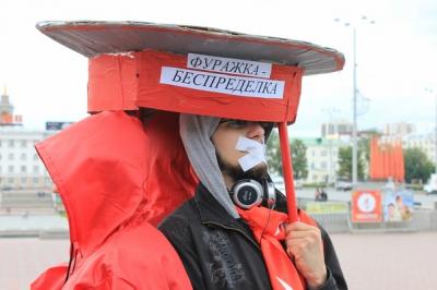 Троих комсомольцев "скрыла" под собой большая, примерно метр в диаметре, фуражка, символизирующая всеохватность полицейского контроля и репрессивной машины ГУВД – прокуратуры - ФСБ. Необходимо отметить, что даже данное мероприятие не обошлось без навязчивого вмешательства властей. Изначально планировавшийся митинг возле представительства генерального прокурора на ул. Пушкина пришлось провести как пикет на площади Труда. Но и этого правоохранителям оказалось недостаточно. Во время проведения акции лидеру комсомольцев Александру Ивачёву сообщили, что скандирование молодыми коммунистами лозунгов незаконно, но, рассудив, что гланды звукоусиливающей аппаратурой не являются, коммунисты развернули строй поближе к проезжей части проспекта Ленина и продолжали скандировать.