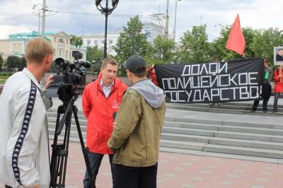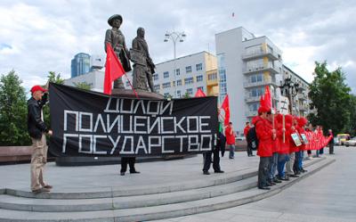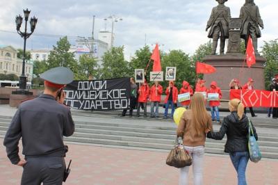 Сегодня свердловскими комсомольцами была проведена акция протеста против полицейского беспредела, ставшего в последнее время нормой поведения для органов правопорядка.
