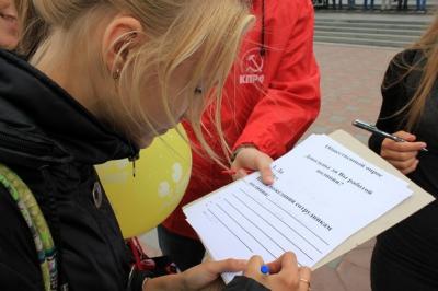 Требования молодых коммунистов, развернувших плакаты, были предельно ясны: прекращение использования центра по противодействию экстремизму ГУВД в качестве орудия политической борьбы, освобождение политических заключенных, переключение внимания полиции на борьбу с реальными преступлениями.