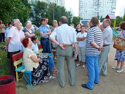 31 июля на детской площадке возле дома 12 по улице Авиаторов прошла встреча жителей района Солнцево с руководителем фракции КПРФ в Мосгордуме Андреем Клычковым.