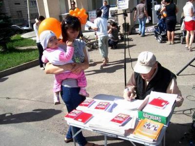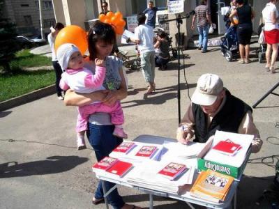 Координатор акции Наиля Ганеева и её сторонники собирали подписи на имя Президента РТ с требованием разработать и осуществить программу по ликвидации очередности в детские сады до 2013 года.