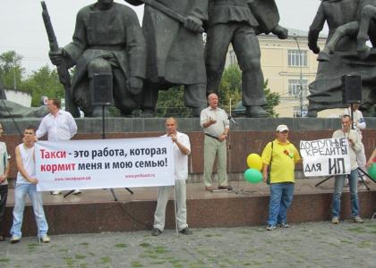 «Такси – это работа, которая кормит меня и мою семью!» – под таким лозунгом 9 августа у монумента Памяти Революции 1905 года прошёл митинг таксистов. Протестовать против нового закона вышли водители с семьями, члены профсоюзов и представители различных общественных организаций.