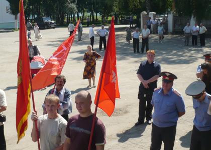 Открыл акцию протеста первый секретарь райкома В.К.Кушнир, а единственный вышедший к людям представитель власти, глава администрации района, член прохоровского «Правого дела» Г.А.Ларин убеждал собравшихся воздержаться от голодовки, мол, деньги придут и голодать незачем. А другой высокопоставленный чиновник – заместитель губернатора А.Н.Кошелев, ранее в качестве замначальника областного УВД прославившийся разгоном оппозиционных митингов, на сей раз скромно затерялся в сторонке, о чём-то беседуя с местным прокурором.