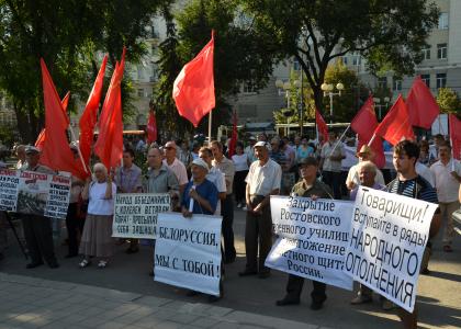 10 августа на площади Советов коммунисты Ростова провели митинг против разрушения отечественной Армии и Флота. Главным требованием собравшихся была отмена приказа министра обороны г-на Сердюкова о расформировании Ростовского Военного института ракетных войск имени Неделина и Новочеркасского военного училища связи.