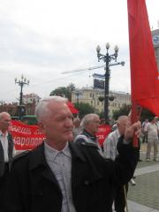 Пенсионер Н.Соболевский в выступлении привел многочисленные примеры разрушительной политики руководства страны и края. За эти 20 лет исчезли сотни крупных и средних промышленных предприятий. В их числе хабаровский Дальдизель, тресты стройиндустрии с их заводами, кирпичные заводы, станкостроительный и т.д. На ладан дышат оборонные заводы, судостроительные, пищевой промышленности. В России сейчас горе-руководству выдвигаются иски, нужно и нам выдвинуть своему «непотопляемому» В.Ишаеву. Никто никакой ответственности не несет за такое, а ведь это преступления.