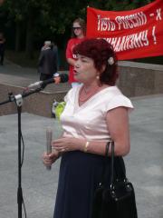 Член Сосновского райкома КПРФ А.Г. Савруцкий в своей речи отметил, что он вырос в детском доме, и только благодаря Советской власти смог многого добиться в жизни. С огромной болью в душе он говорил о развале СССР и о том, что считает необходимым для себя бороться за возрождение страны Советов.