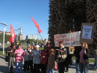 Вышли на улицу комсомольцы Перми, вместе с ними в пикете участвовали коммунисты, члены Российского Социалистического Движения, представители координационного совета протестных действий, защитники Гайвинского бора, пионеры и жители многих районов города. Народу собралось гораздо больше, чем было заявлено, но полиция отнеслась к протестному мероприятию вполне лояльно и даже заинтересованно. Комсомольцы подготовили красочный стенд, рассказывающий о борьбе за Химкинский лес, а также отражающий плачевное положение лесов в России. Участники держали красные флаги, плакаты и призывы сохранить и отстоять богатство России – русский лес. Распространялись листовки «Сохранить лес!»