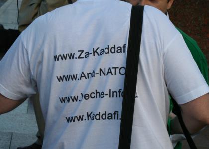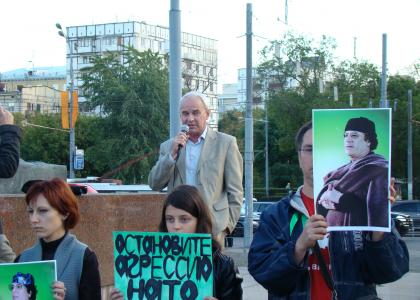 5 сентября с.г. на площади у метро «Улица 1905 года» активисты Интернет-сообщества «За Каддафи» при поддержке КПРФ провели митинг протеста против агрессии НАТО в Ливии, в поддержку борьбы её героического народа во главе с полковником Муаммаром Каддафи. Митингующие подняли зелёные флаги Ливийской Социалистической Джамахирии и красные флаги СССР и КПРФ, развернули плакаты с лозунгами в поддержку Ливии и портреты Каддафи.