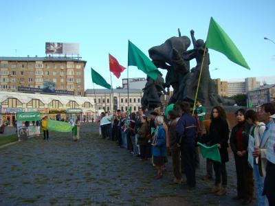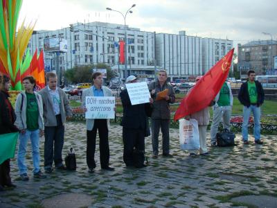 5 сентября с.г. на площади у метро «Улица 1905 года» активисты Интернет-сообщества «За Каддафи» при поддержке КПРФ провели митинг протеста против агрессии НАТО в Ливии, в поддержку борьбы её героического народа во главе с полковником Муаммаром Каддафи. Митингующие подняли зелёные флаги Ливийской Социалистической Джамахирии и красные флаги СССР и КПРФ, развернули плакаты с лозунгами в поддержку Ливии и портреты Каддафи.