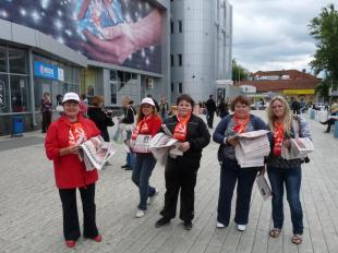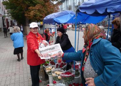 Коммунисты и комсомольцы поздравляли прохожих с праздником, вручали газету «Правда», а также раздавали агитационную литературу. «Возьмите! Это и вас касается!», — призывали коммунисты земляков. Многие с интересом брали газеты и листовки из рук активистов левого движения.