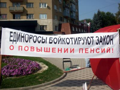 «Государственная Дума, где большинство имеет партия «Единая Россия», отказалась рассматривать законопроект фракции КПРФ о предоставлении поколению 1928-1945 гг. рождения, вынесшему на своих плечах тяготы военного лихолетья, восстанавливавшему страну из руин и создававшему мощь великой Советской державы, льгот и доплат к пенсиям, как это сделано уже на Украине, в Казахстане, Азербайджане и других государствах. За шесть месяцев на все просьбы к губернатору Гордееву и мэру Колиуху встретиться с активом общественной организации «Дети военного времени» - молчание. Поэтому мы заявляем: не верим и не доверяем единороссовской власти. Кайтесь и уходите!» – так объяснил смысл проводимой акции протеста руководитель воронежских «Детей военного времени» Н.М. Авраменко.