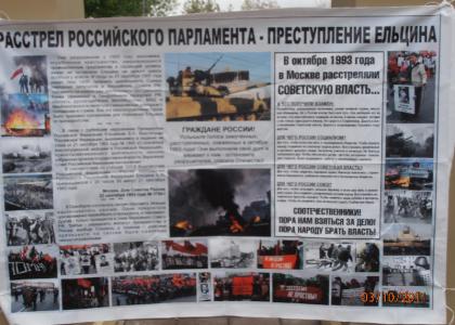Напомним, что в октябре 1993 года по приказу Б. Ельцина из танков было обстреляно здание Верховного Совета. Стреляли не только по Белому дому, но и по мирной демонстрации, защищавшей законно избранную власть.