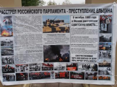 Напомним, что в октябре 1993 года по приказу Б. Ельцина из танков было обстреляно здание Верховного Совета. Стреляли не только по Белому дому, но и по мирной демонстрации, защищавшей законно избранную власть.