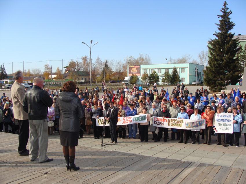 Основной организатор акции, руководитель профсоюза завода Марина Пахолкова, готовясь к мероприятию, пригласила к участию в нем представителей всех парламентских партий, и всем было предоставлено слово. Пропитанное праведным гневом выступление первого секретаря Алтайского крайкома компартии Михаила Заполева было поддержано большинством участников мероприятия: