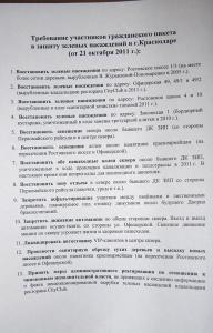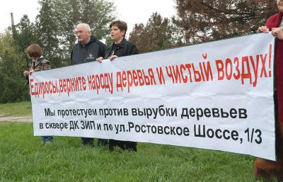 Вышедшие на пикет люди, помимо прочих претензий к власти, высказывали протест против нерешаемой вот уже шесть лет ситуации с вырубкой деревьев на ул.Ростовское Шоссе 1/3, где с согласия членов ЕР, в защитной лесополосе было уничтожено свыше сотни здоровых деревьев. В 2011 году уничтожению подверглись деревья и кустарники в сквере, находящемся рядом с бывшим ДК ЗИП, где вместо них появляются всё новые строения и стояночные места для ресторана "Сити Клаб".