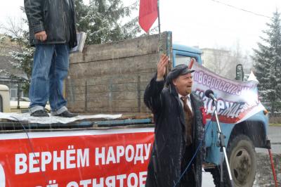 На митинге выступили первый секретарь Алтайского крайкома КПРФ, депутат АКЗС Михаил Заполев, секретарь по идеологии крайкома ЛКСМ Павел Поляков, представитель бийского ЛКСМ Конрад Маюнов, новосибирский комсомолец Иван Сигис, представитель Союза офицеров, полковник КГБ в отставке Георгий Булахов, ветеран Великой отечественной войны, служивший в 232-й гвардейской дивизии, музей которой расположен в ГДО, Георгий Городских; бийский коммунист, кандидат в депутаты АКЗС Александр Наумов, бывший главный конструктор оборонной отрасли оборонной промышленности «Сибприбормаш», гвардии капитан морского флота Парада Михаил, художественный руководитель ГДО Татьяна Григорьева, от женского союза «Надежда России» выступала Валентина Коробова. В митинге также приняли участие бийские коммунисты, представители новосибирской молодежной организации РКСМ, «Трезвый Бийск». Хотя погода не баловала — было ветрено, падал мокрый снег с дождем, —на мероприятие собралось около 100 человек.