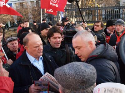 «Обращаюсь к Нургалиеву – как к министру внутренних дел РФ. Это ведь уже не первый факт и не первый случай. У нас была попытка закрытия штаб–квартиры КПРФ в Твери. Министр вмешался – угомонились эти ретивые исполнители на местах. Вот сейчас еще один пришел – и хватает, тащит сразу в машину. Говорит, пикет. Нет никакого пикета – мы раздаем литературу и материалы всем гражданам страны. Идет выборная кампания – все партии занимаются этим. «Единая Россия», в конце концов, занимается этим каждый день – начиная с президента и премьера. А нам, оказывается, раздавать свою литературу в родной столице накануне праздника запрещено», - заметил Г.А. Зюганов.