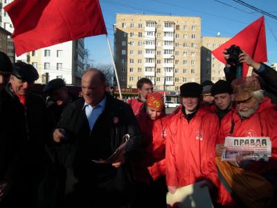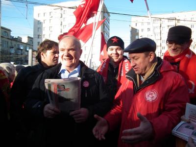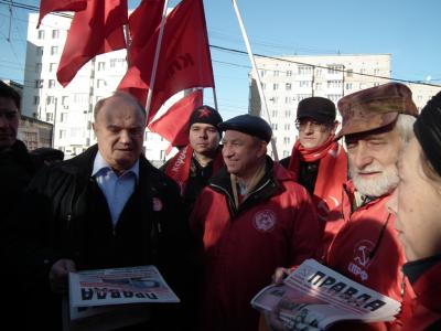 Среди кандидатов, действовавших в районе станции метро Октябрьская, находились Председатель ЦК КПРФ Г.А.Зюганов и Первый секретарь московской парторганизации В.Ф.Рашкин. Кандидаты в депутаты, доверенные лица и активисты раздавали прохожим газету МГК КПРФ "Правда Москвы", брошюры, листовки и другую агитпродукцию, а также наносили на поверхность тротуара эмблематику КПРФ.