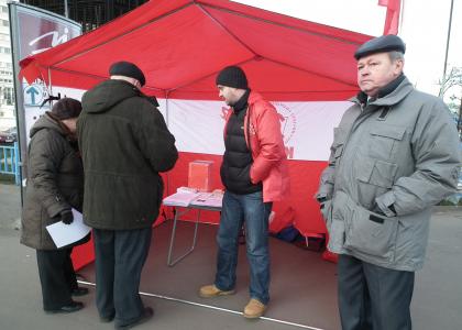 Всего акция проходит в 186 точках города, в ней принимают участие 837 человек. Среди них коммунисты и комсомольцы, депутаты различных уровней, кандидаты в депутаты Госдумы, доверенные лица. Очень много молодежи. Наши активисты беседуют с москвичами, раздают литературу и газеты, проводят голосование по вопросам Народного референдума. Мероприятие находит живой отклик у граждан. Они охотно берут нашу программу, при этом отмечают, что за последнее время активность коммунистов в столице значительно повысилась. На улицах появились билборды с изображением Геннадия Андреевича Зюганова и нашими лозунгами: «Заставим вернуть украденное!», «Качественное и доступное образование для всех!», «Защитим русских! Вернем дружбу народов!», «Очистим Москву от жуликов и воров!».