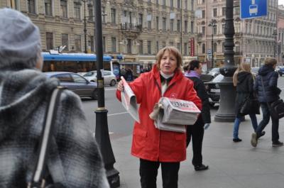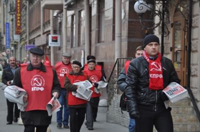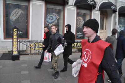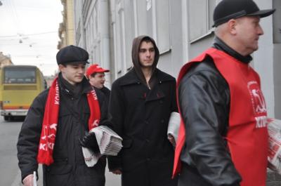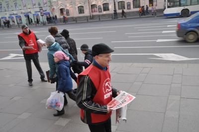 В раздаче партийной прессы на Невском проспекте приняли активное участие кандидаты в депутаты Законодательного Собрания Санкт-Петербурга пятого созыва от КПРФ.