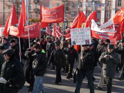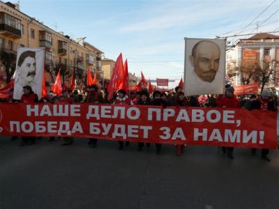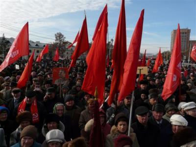 7 ноября в г.Рязани трехтысячная краснознаменная колонна, объединившая активистов областных организаций КПРФ, ЛКСМ РФ, РУСО, ВСЖ «Надежда России», Союза советских офицеров, жителей областного центра прошла по центральному проспекту города – Первомайскому от площади Победы до площади имени вождя мирового пролетариата и основателя первого в мире советского государства В.И. Ленина, где состоялся митинг.