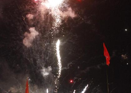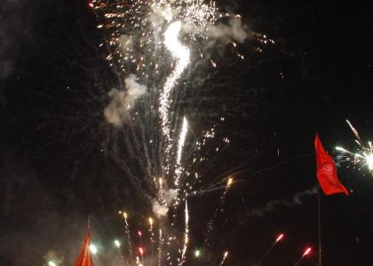 Под жизнеутверждающие слова пахмутовской песни «И вновь продолжается бой» в ноябрьское небо взметнулись огни праздничного фейерверка. Завершился митинг исполнением «Интернационала».