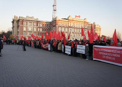 Мы, участники митинга в честь 94-й годовщины Великого Октября, обращаемся ко всем кому дорого будущее нашей страны – от нас всех зависит, сможем ли мы, сплотившись, добиться в ближайшее время, чтобы богатства России служили не кучке дельцов, а её народу – всем и каждому из россиян.