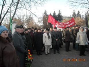 Построившись в колонну, под звуки духового оркестра они прошли по главным улицам в Комсомольский сквер, где состоялся митинг, вёл который первый секретарь местного комитета КПРФ, депутат областной Думы О.Е.Веселов. К памятнику В.И.Ленину и Вечному огню в Комсомольском сквере были возложены цветы.